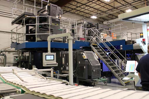 B&B recently celebrated the startup of the first 48-page, four-color manroland Goss Lithoman LED-UV web offset press in the world — an environmental and economic game-changer for the entire industry. The press incorporates Baldwin/AMS LED-UV technology, which in turn eliminates all VOC emissions, reduces natural gas consumption and paper waste, and enables a 40-ft. reduction in the press length compared to a traditional heatset web offset press.