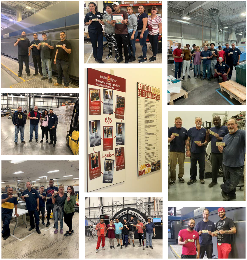 “Team members love this program, which pays out close to $50,000 per year. It keeps them engaged looking for opportunities to improve our performance,” Galligan says. “Equally important, it increases productivity by close to $1 million annually. “And seeing the ‘Wall of Fame’ makes a big impact on clients when they come to our facility and realize the extent of our commitment to continuously improve quality and productivity,” he adds. “The feedback we get from our clients is that B&B’s quality, customer service, and lead times are top-notch.”